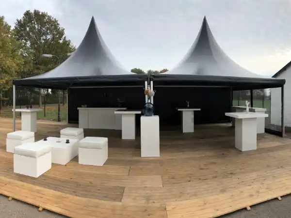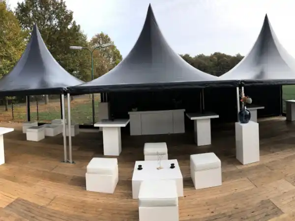 Snelle Opbouw: Ondanks de luxe uitstraling is het systeem efficiënt. Een ervaren team zet een pagode tent in een handomdraai op, waardoor de overlast op de locatie minimaal is.