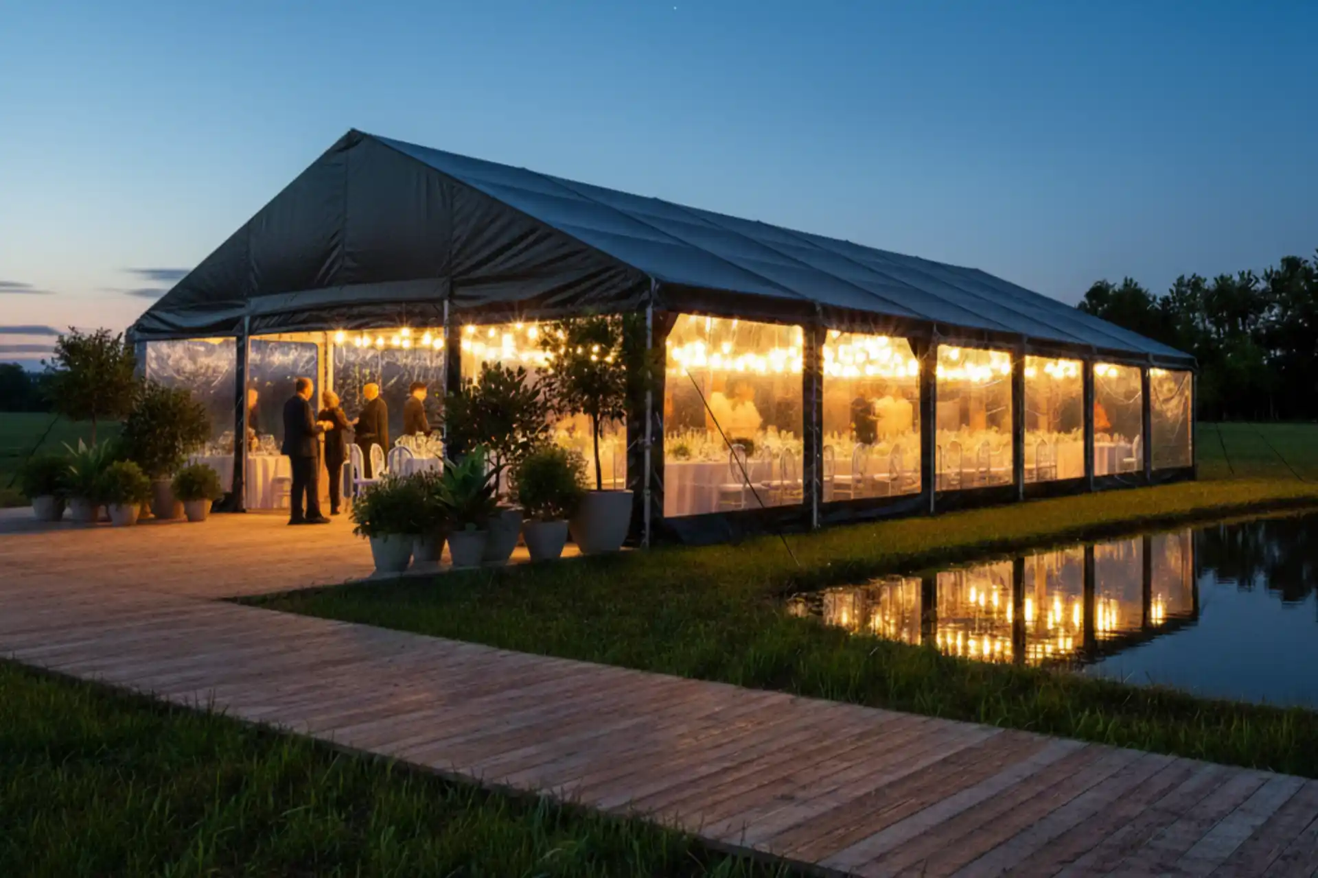 Geen steunpalen in de tent, waardoor u volledige vrijheid heeft bij het inrichten van podia, tribunes of lange tafels.